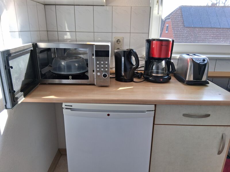 Auf jede Etage befindet sich eine Gemeinschaftsküche,mit Mikrowelle mit Backhofen und Grill,Kaffeemaschine ,4 Platten Herd und Wasserkocher und Kühlschrank.